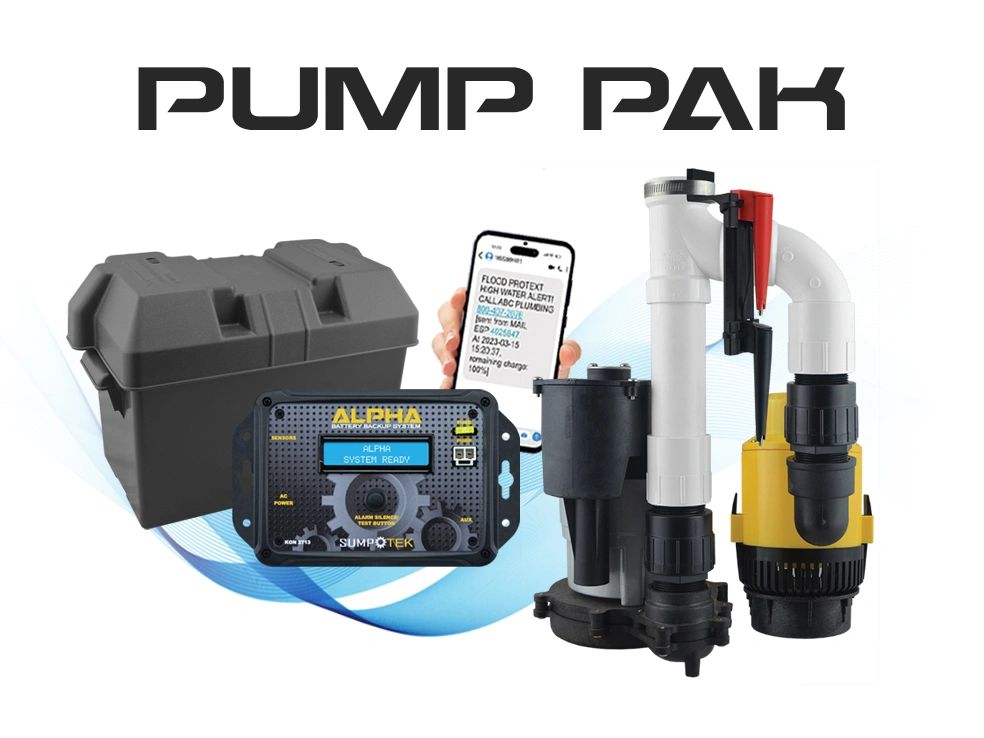 Sumptek PumpPak kits are pre-piped with both the sump pump and battery backup sump pump system. This complete system saves on both time and material while maintaining a proper install everytime.